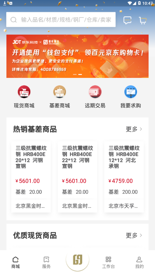 现货超市汇集了各类钢材产品,包括建筑用钢、工业用钢等,品类齐全且价格透明。钢厂直销渠道确保货源质量可靠,同时提供优惠价格。平台还会根据市场需求实时推荐热销产品,帮助用户快速找到所需钢材,节省选购时间。