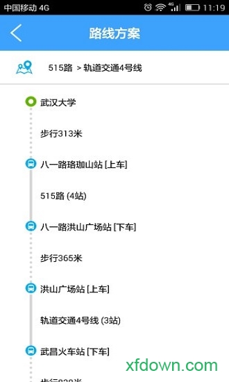 换乘方案推荐:用户输入起点和终点后,软件会智能推荐最优的换乘方案,包括步行距离、换乘次数和预计耗时,帮助用户规划最便捷的出行路线。