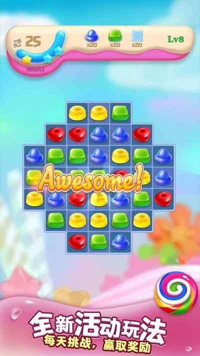 糖果拼乐拼手机版是一款充满趣味的休闲消除游戏,采用精美炫酷的画面设计,为玩家带来极致的视觉享受。游戏中包含海量精心设计的关卡,让你在轻松愉快的氛围中体验经典消除玩法的魅力。无论是想放松心情还是挑战自我,这款游戏都能满足你的需求。简单易上手的操作配合丰富的游戏内容,让每位玩家都能快速沉浸其中。现在就下载游戏,开启你的糖果消除冒险之旅吧!
