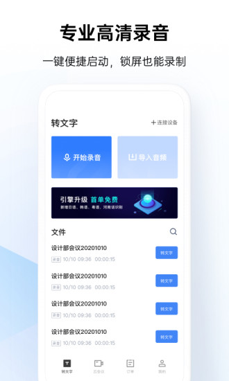 ①录音识别:通过智能降噪技术实现高清录音,录音同时即可实时显示转写文本,支持暂停续录功能