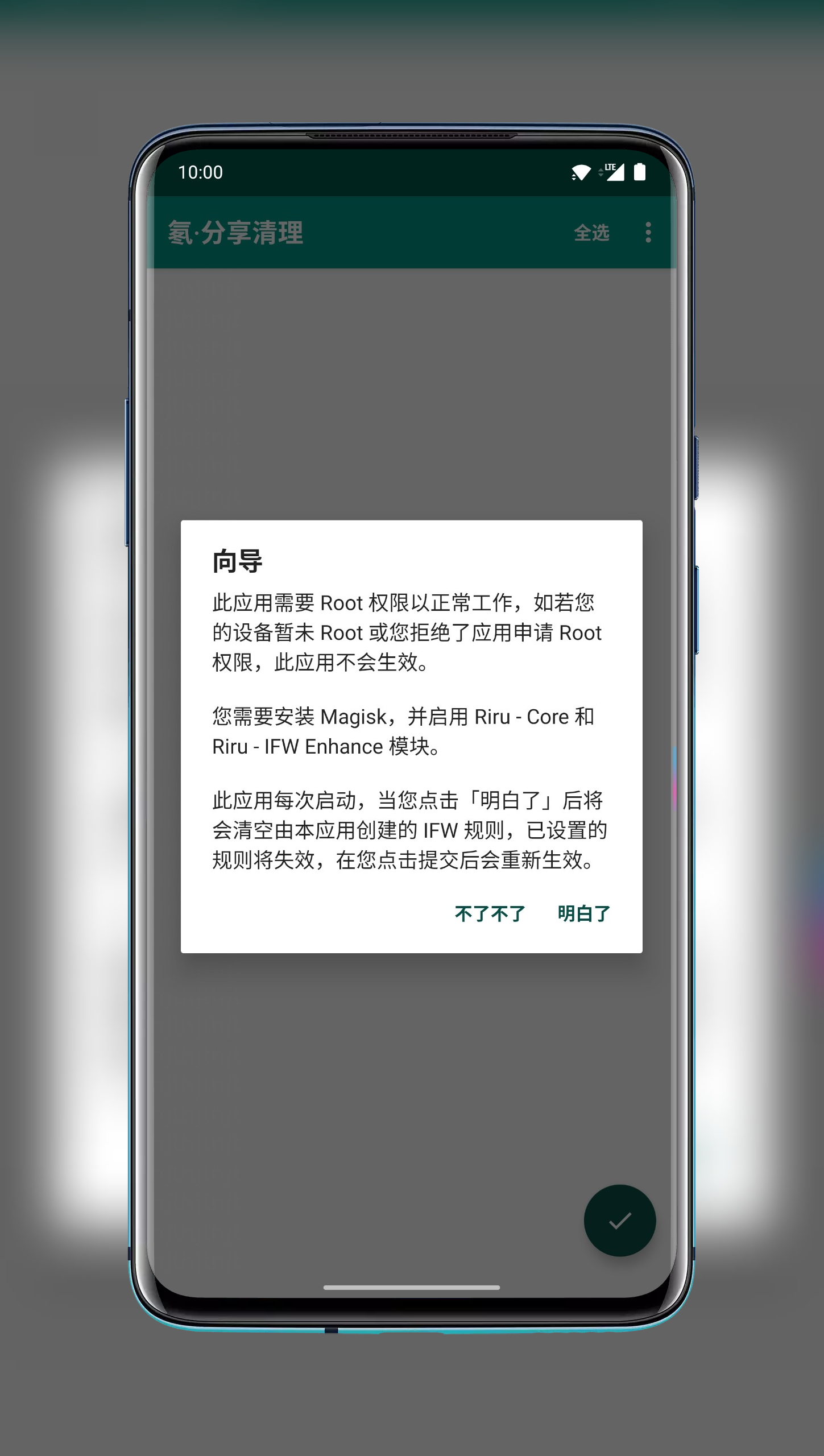 4.打开「氡·分享清理」应用,系统会提示请求Root权限,请务必授予权限以保证功能正常使用;