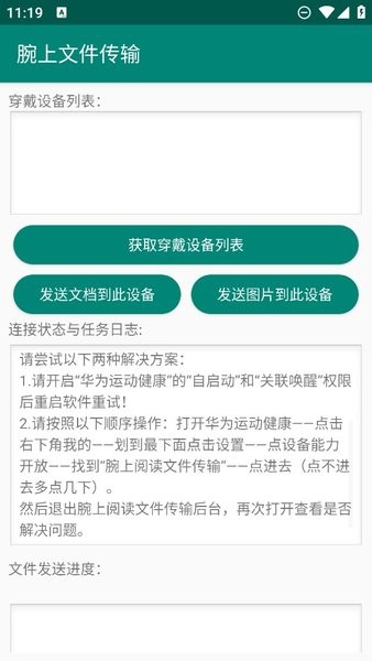 腕上文件传输助手手表版是一款专为华为智能手表用户设计的实用工具,旨在为用户提供便捷的文件管理体验。通过这款应用,您可以轻松在手表上进行文件存储、管理和分享操作,还能享受专属的自定义推送服务。无论是日常办公还是休闲娱乐,它都能满足您对文件处理的各种需求,让您的智能手表功能更加强大。支持多种文件格式的传输和播放,让您随时随地都能高效处理文件,享受数字生活带来的便利。