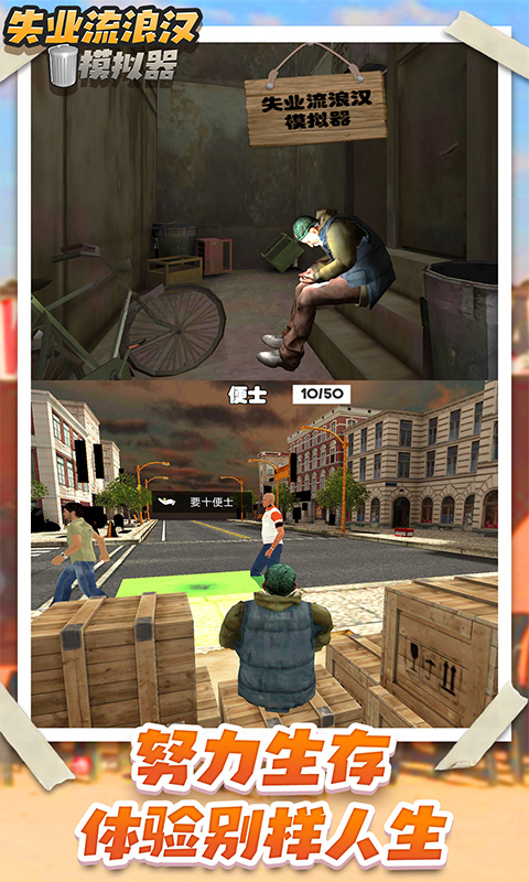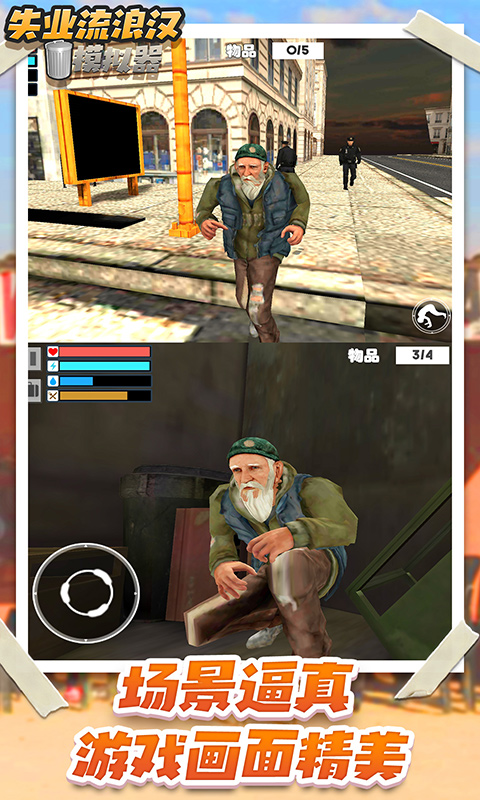 《流浪乞丐模拟器手机版》带你体验一场颠覆人生的生存挑战。在这款高度自由的模拟游戏中,你将扮演一位无家可归的流浪者,从最底层的垃圾桶翻找开始你的逆袭之旅。游戏真实还原了街头生存的残酷与机遇——每天需要精打细算地分配体力,在垃圾堆中寻找可用的衣物和食物,同时还要躲避其他流浪者的争夺。随着游戏进程,你可以通过乞讨、交易甚至投资等方式积累财富,最终实现从乞丐到富豪的华丽转身。细腻的3D建模让城市街景栩栩如生,昼夜交替系统和动态天气变化更增添了生存的真实感。