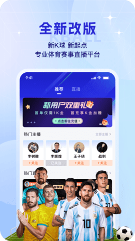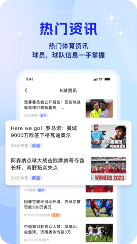 K球APP是一款专为足球爱好者打造的体育资讯平台,汇聚全球各大足球赛事资源,提供全天候的实时高清直播服务。无论您关注英超、西甲、欧冠还是其他热门联赛,这里都能满足您的观赛需求。平台每日更新最新比赛动态、赛程安排和球员数据,让您随时掌握足坛热点。独特的智能推荐系统会根据您的喜好推送个性化内容,更有专业团队带来的独家赛事分析和精彩集锦。现在就下载K球APP,开启您的专业足球观赛体验!