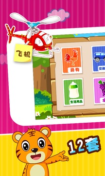 精心设计了12套共100多张认知卡片,内容涵盖动物、水果、蔬菜、数字、职业、颜色、声音、国旗、交通工具、身体部位、生活用品、家用电器等12大主题。每张卡片都配有精美的插图和生动的音效,通过图文对应的小游戏帮助孩子建立正确的认知关联,加深记忆。