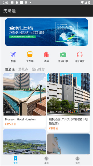 1、打开天际通App,点击页面顶部搜索栏或点击全球流量,搜索目的地; 您可以根据旅行计划提前购买套餐,系统会自动识别您的位置并提供最优连接方案。