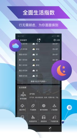 生活指数建议,如穿衣、洗车、运动等实用指南。