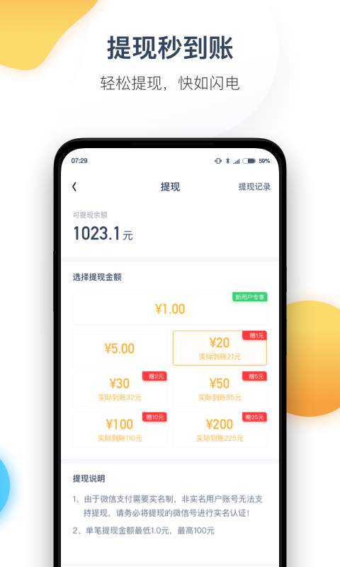 刷视频,做任务赢大额金币,做的越多赚的越多;每日更新数十种趣味任务,从知识问答到小游戏挑战应有尽有。任务难度分级明确,新手也能快速上手。特别设置的新人专属任务区,帮助用户快速积累第一桶金。周末还会推出限时双倍奖励活动,让收益翻倍。
