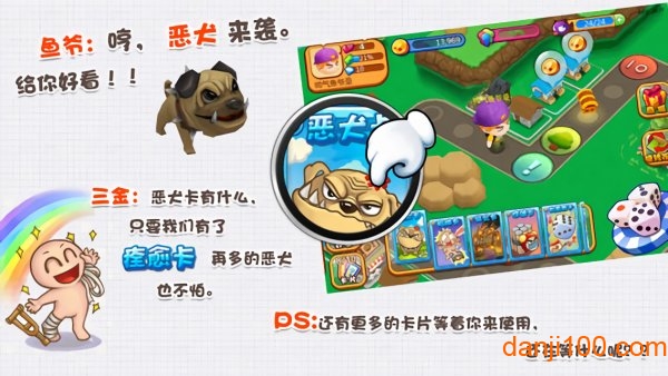 掷骰子移动:玩家通过掷骰子决定前进的步数,随机性带来紧张刺激的体验。每一步可能触发购买土地、支付租金或特殊事件,考验玩家的决策能力。