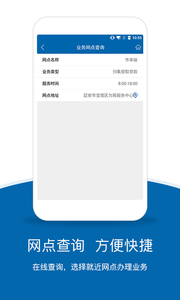 在线查询,选择就近网点办理业务,支持地图导航和营业时间显示