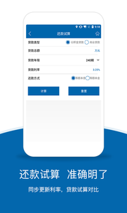 同步更新利率,贷款试算对比,提供多种还款方案和月供明细计算