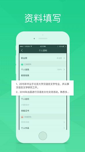 独创的逆向求职模式,用户创建专属人才卡片后,系统会自动将其推送给匹配的企业HR。平台每日活跃HR超过5万名,涵盖互联网、金融、教育等主流行业,大大提升被优质企业发现的机会。