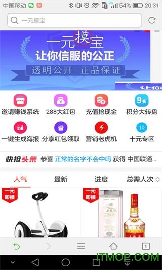 挑选喜欢的商品:商品分配对应数量的号码,使用对应摸宝币,可以获得其中1个号码(系统随机分配),每个号码都有平等的中奖机会;