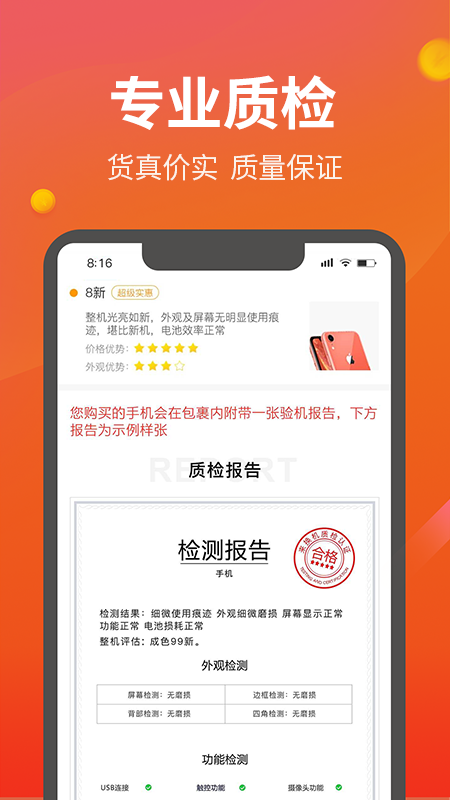 「海量活动,惊喜不断」平台不仅提供最优质的二手手机,还经常推出限时特惠、满减折扣等丰富活动,让用户享受更多实惠。「靠谱有保障!」由专业质检团队严格把关,通过四道检测程序和38项功能测试,确保每部手机都达到标准。「正品保障,售后无忧」所有商品均为100%原装正品,并提供一年保修和七天无理由退换服务,让用户购物更安心。