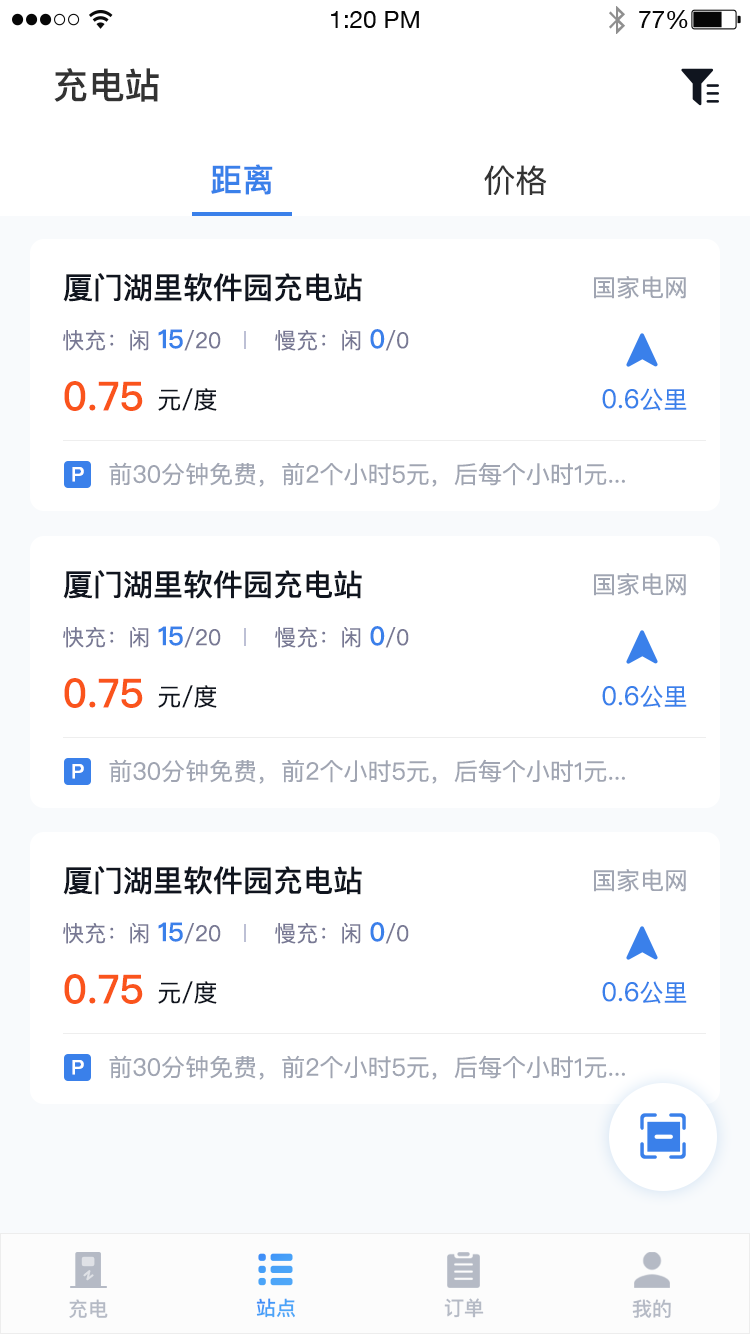 电站搜索:支持多种搜索条件筛选,可快速定位目标充电桩,并实时更新充电终端的使用情况,避免空跑。