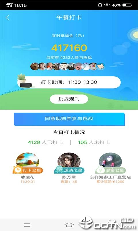 用户首先需要从丰富的挑战项目中选择自己感兴趣的内容参与,平台提供包括运动健身、作息调整、学习提升等多种类型的打卡任务。完成选择后,用户需按照要求进行每日打卡记录,系统会自动追踪完成情况。最重要的是保持持续参与,随着打卡天数的累积,用户不仅能收获健康的生活方式,还能与其他参与者共同分享平台设置的奖励金,让坚持变得更有动力。