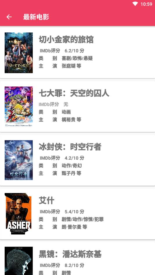 详细的影片信息库,包括演员、导演、剧情介绍和用户评分。