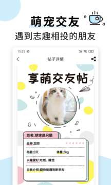 享萌-平台是一个专为宠物爱好者打造的综合性社交平台,这里汇聚了大量可爱的萌宠和热情的铲屎官。平台内容丰富多样,涵盖了宠物日常、健康护理、行为训练等各类养宠话题,让每一位用户都能找到自己感兴趣的内容。在这里,你可以分享自家宠物的萌照和趣事,结识志同道合的小伙伴,参与丰富多彩的线上线下活动,共同探讨养宠心得。