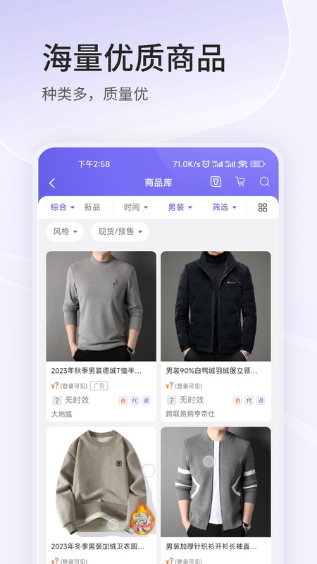 通过平台可以轻松的选款拿货,能够享受便捷与优惠。提供完善的售后服务保障,解决用户后顾之忧。