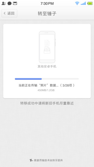 转至官网版是锤子科技专为安卓用户打造的一款高效数据传输工具。这款创新应用采用先进的无线传输技术,无需消耗任何移动流量,即可实现手机数据的快速迁移。无论是更换新机还是备份重要资料,用户都能通过简洁直观的操作界面,轻松完成联系人、照片、应用等各类数据的完整转移。其独特的零流量传输模式和智能应用列表同步功能,让数据迁移变得前所未有的便捷,完美解决了用户换机时的数据迁移痛点。