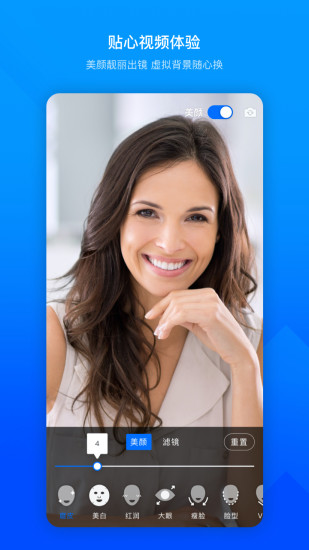 -采用业界领先的编解码技术,提供影院级高清画质,支持视频美颜和智能背景虚化功能;