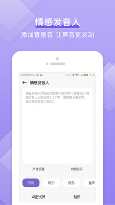 主要通过手机输入文字转换成音频文件(wav/mp3),转换过程快速高效,音质清晰自然。用户可以根据需要调整语速、音调等参数,获得个性化的语音输出效果。