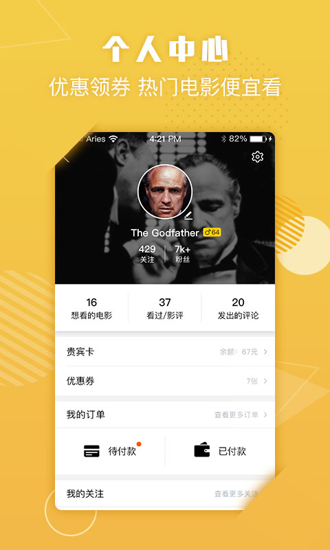 个人中心,优惠领劵,热门电影便宜看!定期发放观影优惠券和会员专属福利,让您以更优惠的价格享受高品质的观影体验。