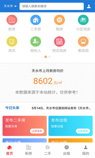 智能搜索功能:通过我们的一键搜索功能,您可以快速精准地找到符合需求的房产信息,同时还能实时关注天水房产市场的最新动态。