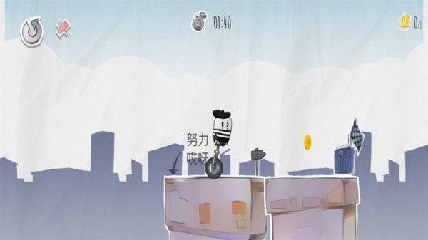 基于真实物理引擎开发的平衡系统,每次倾斜都会影响独轮车的运动轨迹和速度