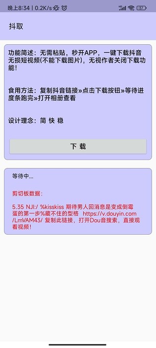 视频提取器app(抖取)是一款专为抖音用户打造的便捷工具,它能轻松提取高清无损的抖音短视频。无论作者是否关闭下载功能,这款软件都能完美突破限制,让您一键保存喜欢的视频内容。操作界面简洁直观,无需复杂设置,复制链接即可快速下载。所有功能完全免费,不收取任何费用,真正做到让用户随心所欲地收藏精彩视频。支持多种分辨率选择,确保视频画质无损,是抖音爱好者必备的实用工具。