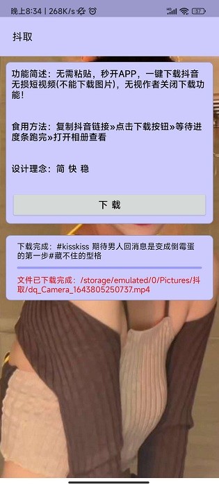 这款软件拥有多项强大功能:自动识别剪切板中的抖音链接,无需手动粘贴;支持批量下载多个视频;下载速度稳定快速,平均10秒即可完成一个视频的下载。特别值得一提的是,即使遇到作者设置了禁止下载的视频,也能轻松突破限制,完整保存到本地相册。软件还内置了智能去水印功能,让您获得更纯净的观看体验。