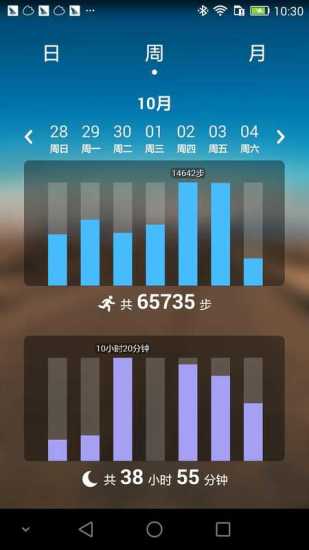 记录每天的运动步数,计算每天消耗的热量,运动距离和时间。通过精准的传感器数据采集,可以详细记录用户一整天的活动轨迹,让运动成果一目了然。智能运动时间轴会告诉你每个运动时间段的运动量,帮助用户合理安排运动计划。记录每天的睡眠情况,告知您每天的深睡时间、浅睡时间和清醒时间,让您更了解自己的睡眠质量。统计你的每日、每周、每月数据,历史数据一目了然,方便用户进行长期健康管理。可以设定目标,鼓励自己完成每天的运动量,通过目标激励让运动更有动力。
