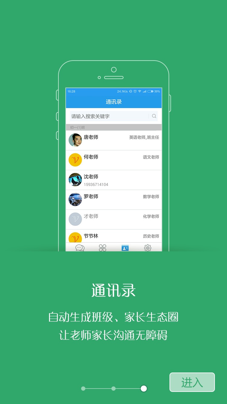 智能通讯录:自动生成班级通讯网络,建立完善的家长生态圈,让教师与家长之间的沟通更加便捷高效。