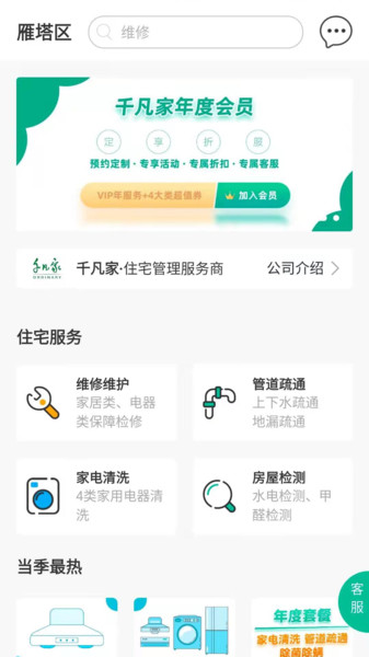 全能:作为西安地区规模最大、服务最全的"一站式"住宅管理服务商,千凡家整合了家政、维修、购物等多元化服务功能,满足用户全方位的家居需求。