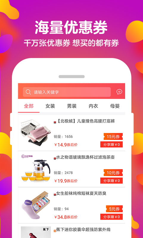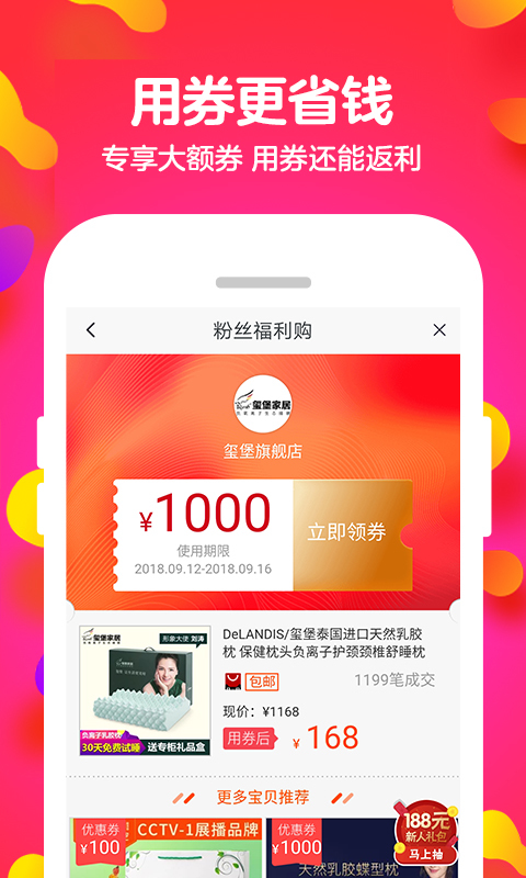 更有专人每天精心挑选超值、热门商品,实时更新爆款清单,让你不错过任何一个省钱机会。先领券再购物,最高可省90%,让购物更划算;随时随地分享优惠给好友,还能获得额外返利,真正做到省钱又赚钱!
