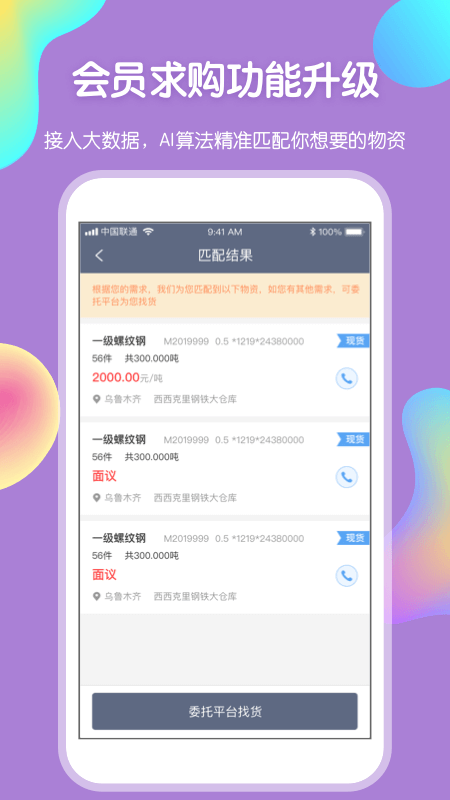 让您随时随地掌握钢材交易订单明细、发货、提货、等实时状态,获悉行业采购、销售企业排行榜,了解自家竞争力!智能化的订单管理系统可实时追踪交易全流程,同时提供行业数据分析报告,帮助企业精准定位市场位置,优化经营策略。