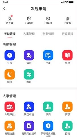 人事管理:提供补卡申请、出差审批、入职离职办理等全流程人事服务,集成智能财务系统,实现人事财务一体化管理。