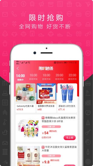 大额优惠券领券立减,优惠到你想不到!平台独家合作商家提供专属折扣,部分商品券后价低至1折起,每天限量发放,先到先得!