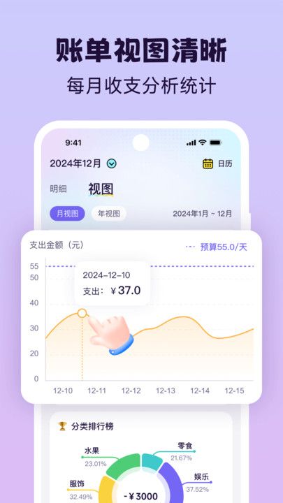 提供详细的财务报表和图表分析,帮助用户直观了解收支情况和财务趋势。