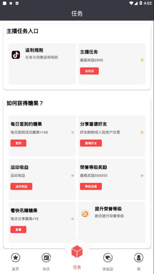 签到奖励:每日签到即可获得糖果奖励,连续签到还能触发额外惊喜。这个简单的习惯不仅能培养用户规律使用app的习惯,还能积累可观的兑换资源。