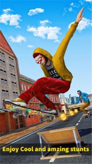 游戏中设有多种道具和装备,玩家可以通过收集金币解锁更多酷炫的滑板和角色,提升游戏体验。