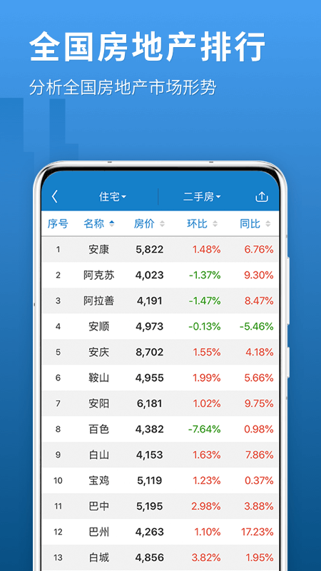 *更多查询:全国城市房价同比、环比数据及排行查询。提供丰富的统计图表和数据分析工具,支持自定义时间范围查询,帮助用户把握市场长期趋势。