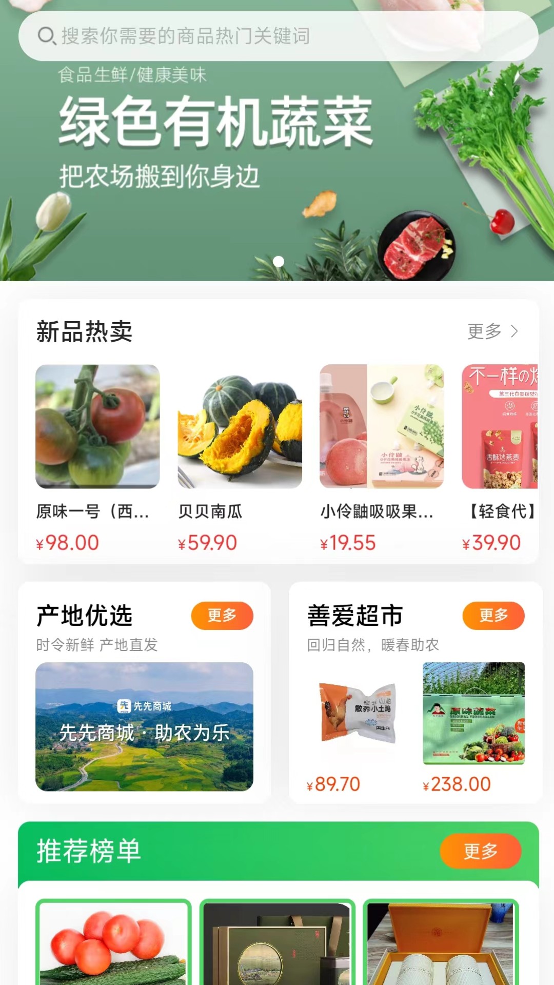先先商城APP是一款专注于提供高品质生鲜食材的线上购物平台,致力于为用户打造便捷、安全、实惠的采购体验。平台汇聚了全国各地优质农产品,从新鲜果蔬到健康禽蛋肉类,严格把控每一环节的品质,确保从田间到餐桌的新鲜直达。同时,先先商城积极履行社会责任,通过扶贫助农板块为贫困地区农户搭建销售渠道,让每一份消费都传递温暖与关怀。无论是日常家庭采购还是企业批量订购,这里都能满足您的多样化需求。