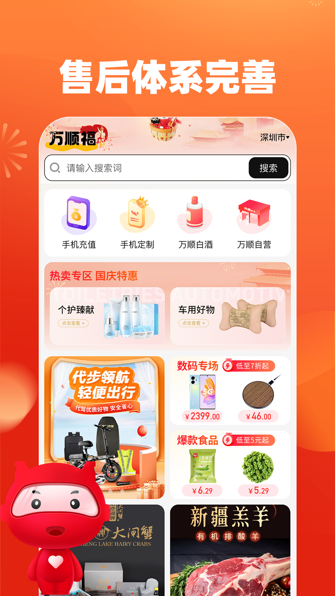 万顺福app致力于打造全方位的智慧生活服务平台,为用户提供多样化的服务选择。无论是日常电商购物、手机话费充值,还是新能源汽车相关服务,万顺福都能满足您的需求。平台不仅提供丰富的商品选择和极具竞争力的价格,还特别注重用户体验,推出了消费评价和商家评分系统,让每位用户都能分享真实的使用感受,帮助其他消费者做出更明智的决策。万顺福始终坚持以用户为中心,不断优化服务流程,提升服务质量,力求为每一位用户带来最优质的消费体验。