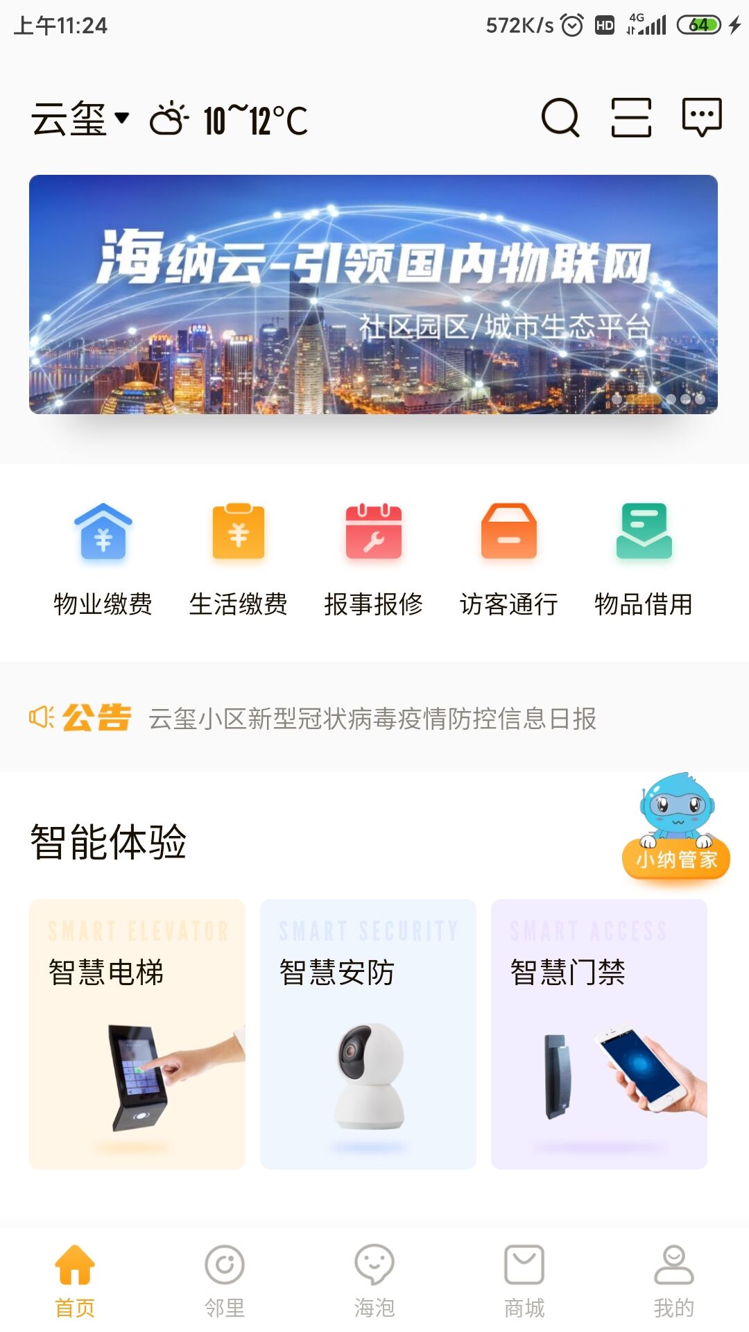 海客会V2App是海客会推出的第二代升级版本,专为社区居民打造的一站式智慧生活服务平台。作为青岛海纳云科技控股公司旗下的数字平台,该应用依托先进的AIOT技术,以用户需求为核心,整合了智能互联、物业服务和社群交互三大功能模块,致力于为用户提供更加便捷、高效的社区生活体验。