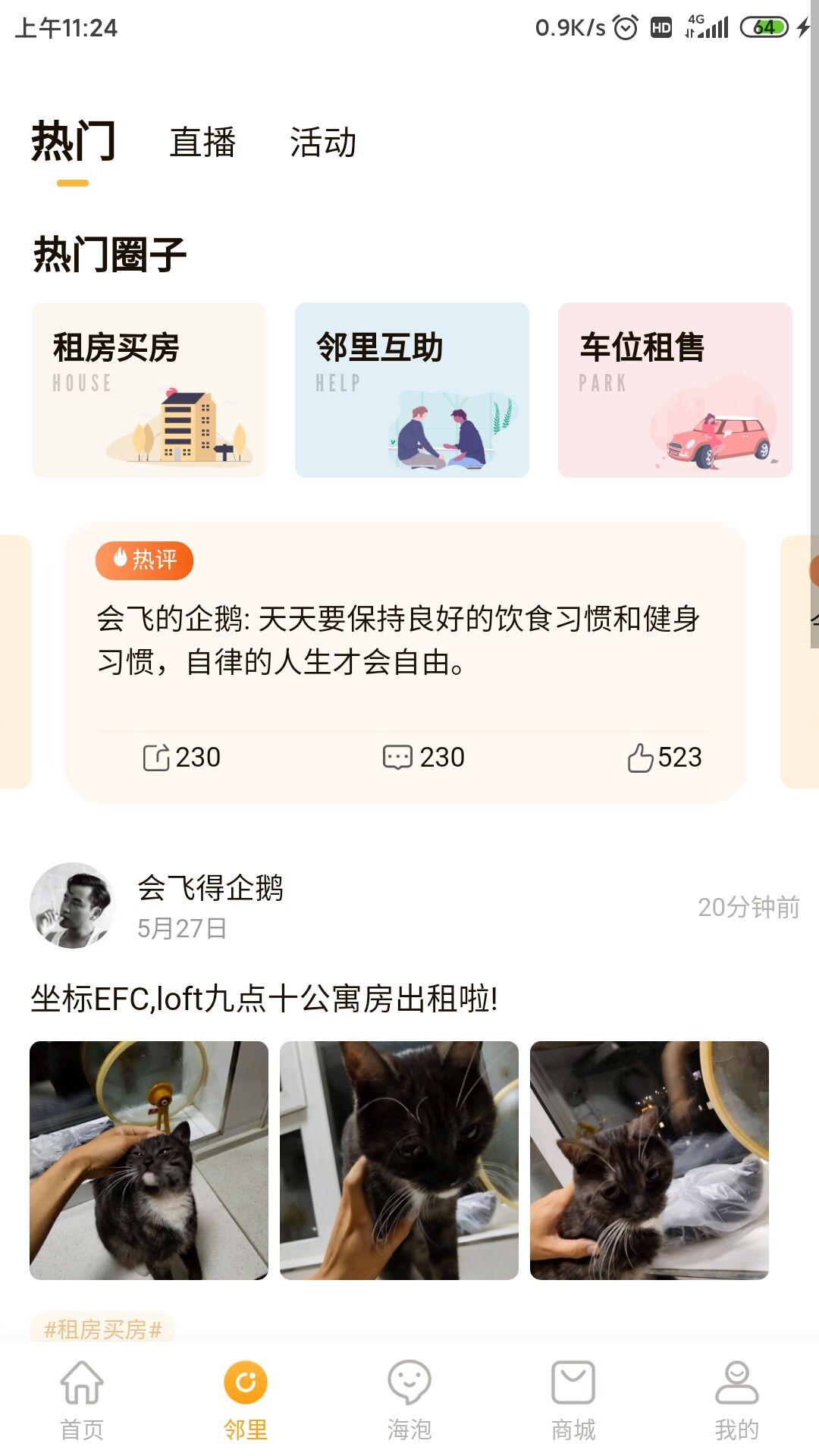 在社交和商业服务方面,海客会V2App提供了丰富的邻里生活功能和社区商城服务。居民可以通过平台结识邻居,参与社区活动,分享生活点滴。社区商城则精选优质商品和服务,满足居民的日常购物需求,打造便捷的社区消费场景。
