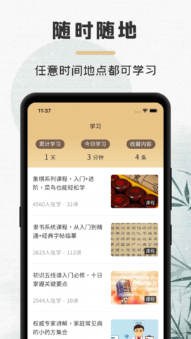 终身学习理念贯穿软件设计,无论用户年龄多大,都能在这里找到感兴趣的学习内容。从传统文化到现代科技,从生活技巧到艺术欣赏,海量课程资源满足不同用户的学习需求,让知识获取变得轻松愉快。