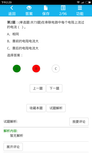 软件模式分练习模式和考试模式,在练习模式里,研发单位还贴心地为学员设计加强练习功能,只要你点击一下该功能,在练习中做错的题目都会自动地被筛选出来,你可以针对错题进行巩固练习,让你在考试中更容易取得满分,在考试模式中,如果你在模拟考试时取得高分,那么在真实考试时也一样能够取得高分;系统还提供详细的答题解析和考点说明,帮助用户真正理解题目背后的知识点,而非简单记忆答案。