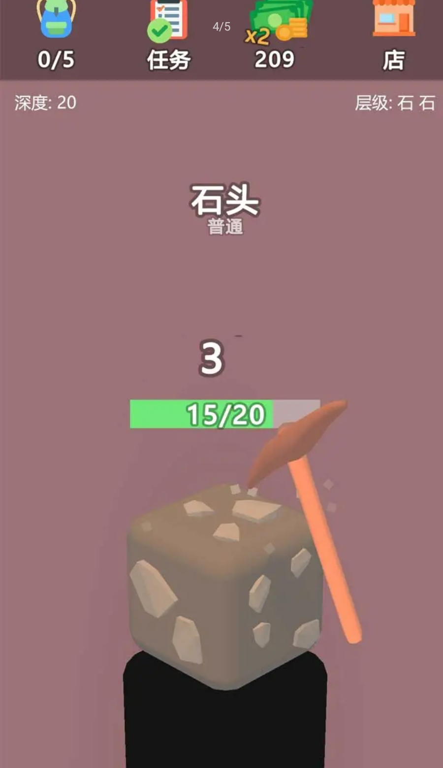 3. 装备升级系统:玩家可升级镐头、背包等装备,提升挖矿效率和容量。