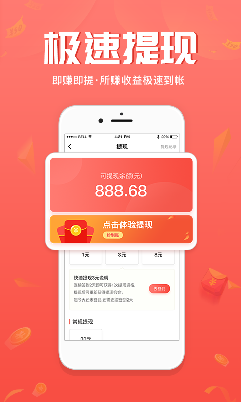 【即时提现功能】所有通过健康行为获得的现金奖励,都可以随时提现到微信或支付宝,真正做到秒到账。提现门槛低至1元,让您的每一分努力都能及时兑现。